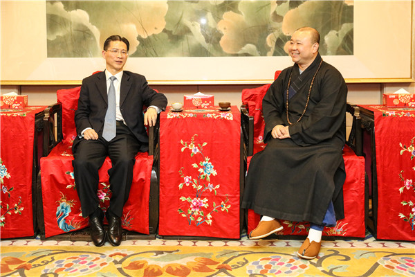 周汉民会长对玉佛禅寺在弘扬中华文化、促进社会和谐、推动公共外交中发挥的积极作用表示肯定。指出,要坚持我国宗教中国化方向,坚持用社会主义核心价值观引领,用中华优秀传统文化浸润,希望玉佛禅寺能一如既往关心国家和上海发展建设,积极引导佛教与社会主义事业的建设发展相适应,同时,注重通过上海公共外交协会的平台进一步提升上海佛教界公共外交活动的知晓度、认可度和社会参与度,推动上海公共外交事业取得新的成果。