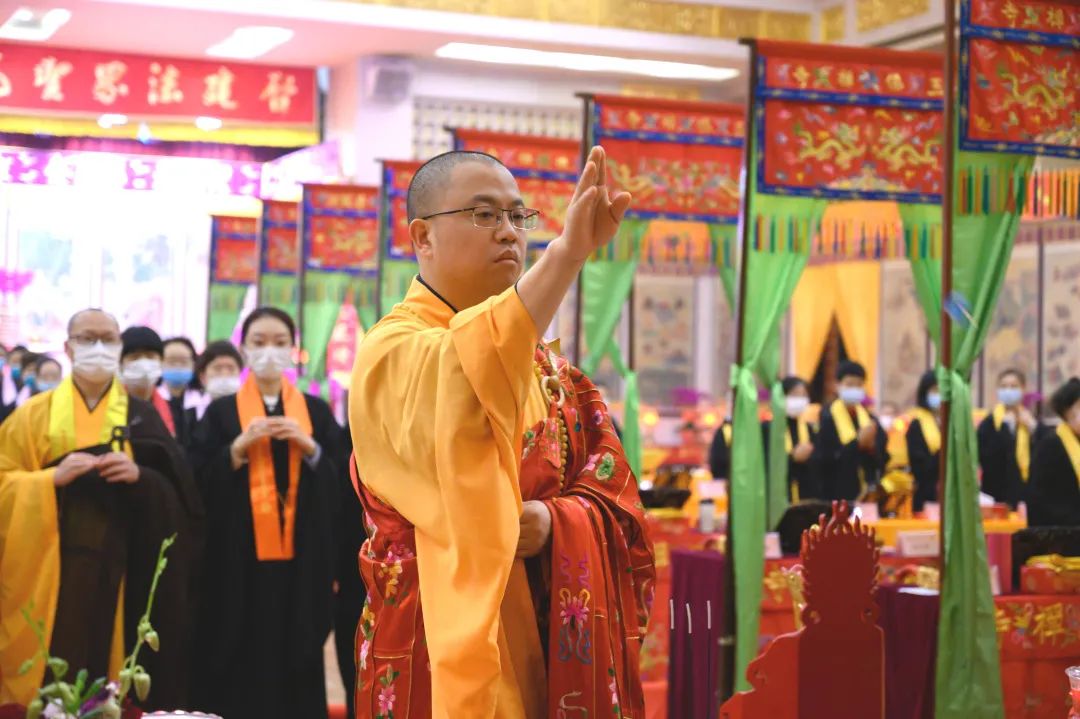上午9时,两序大众礼请玉佛禅寺方丈觉醒大和尚至大坛,为水陆功德主上堂说法。