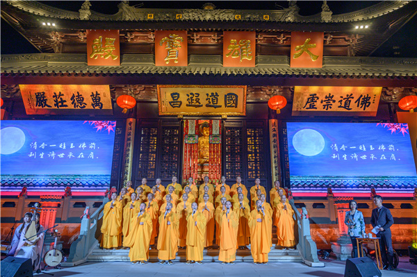 钟声悠远,月儿正圆。齐聚玉佛前,夜静众生欢。2021年9月22日农历八月十六,上海玉佛禅寺于大雄宝殿广场举行“但愿人长久——上海玉佛禅寺中秋诗会”。