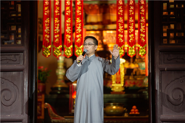 “洪钟初叩,宝偈高吟,上彻佛境,下化三途……”玉佛禅寺梵乐团的法师们以一段《暮钟偈》的梵呗唱诵开启了中秋诗会的序幕。上祝国基巩固,繁荣富强,下祝人民,吉祥安康!三门清净,佛法常兴,土地龙神,安僧护法!父母师长,六亲眷属,历代先祖,同登彼岸!