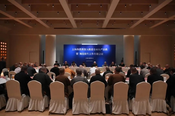 会议要求,全市佛教界尤其是各团体、场所、院校负责人要深刻认识全面从严治教的重要意义,在全面从严治教上发挥“关键作用”,在爱国爱教、宗教造诣、道德品行、发挥作用上做示范、当表率,带头尊法学法守法用法。以全面从严治教、规范放生为抓手,引领全市佛教界持续推进崇俭戒奢教育,深化商业化治理整顿,担负好管教治教的责任,不断净化教内生态,切实提升佛教事务治理法治化水平,不断焕发新时代新征程上海佛教新风采、奋力谱写人间佛教思想孕育地的当代实践新篇章。