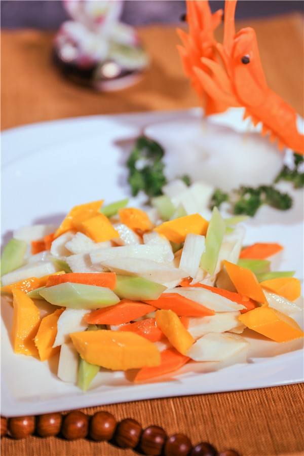 Shanghai Jade temple vegetarian is under the hand of Mr. Zhaopuchu, famous Chinese Buddhist leader wrote inscribed board “Jade Buddha Vegetarian Food Canteen”. For many years inheritance, “Jade Buddha Temple SuZhai” not only offers the traditional temple’s cuisine, but also develops a series of Shanghai flavour vegetarian, which absorbed modern Shanghai cooking style: Saute, Slide fry, Deep fry, Cook, Quick-fry, Roast, Grill and Stew etc. With beautiful color, enjoyable falvour and various taste of sour, sweet, fresh& spicy, “Jade Buddha Temple SuZhai” win famous restaurant reputation at home and aboard, her peaceful and solemn Buddhism culture atmosphere, classical and elegant environment also attract many Buddhism followers.